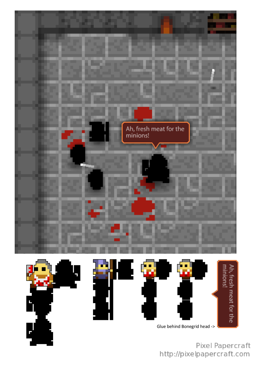Last but not least, the 'dialog' is a test, i glued it behind Bonegrid head (the big character with an axe[?]), but you can add a small piece of paper so you can make it look like in the game.