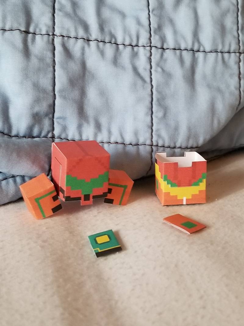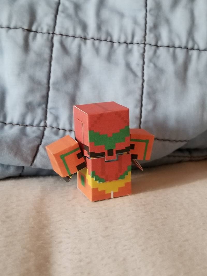 Jeez, been a while since I've been here.. Anyway, heres a design I did in pretty much a day. The Varia Suit is the iconic armor used by Samus Aran in the Metroid series. First appearing with it's bulky shoulder pad design in Metroid II: Return of Samus, it's been in all Metroid games in this design, minus the original Metroid and Metroid Fusion, Samus Aran herself is the main character of the series, being a bounty hunter that's taken down the Space Pirates and their leader Mother Brain, along with exterminating all Metroids and ridding the universe of Phazon. I used the Heavy Diamond Armor as a base for it, and then made a Mini Samus to wear it. Also did a seperate page for both if you only want just one of them. NOTE: To attach the shoulder pads, glue the tabs onto the inside of the helmet. Credits go to lucioloco for the Heavy Diamond Armor design. Here's the link to the skin I used for Samus: https://www.planetminecraft.com/skin/zero-suit-samus/