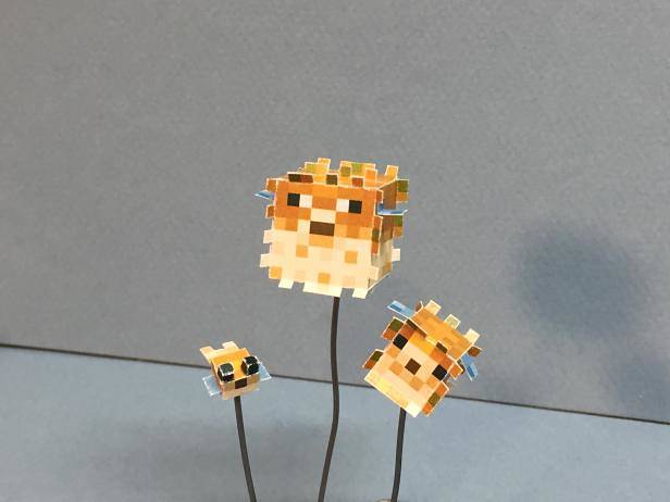The Pufferfish mob was added in 1.13 during the aquatic update. It starts in its tiny phase and gets bigger as the player gets near. If attacked it goes straight to large puff. https://minecraft.fandom.com/wiki/Pufferfish