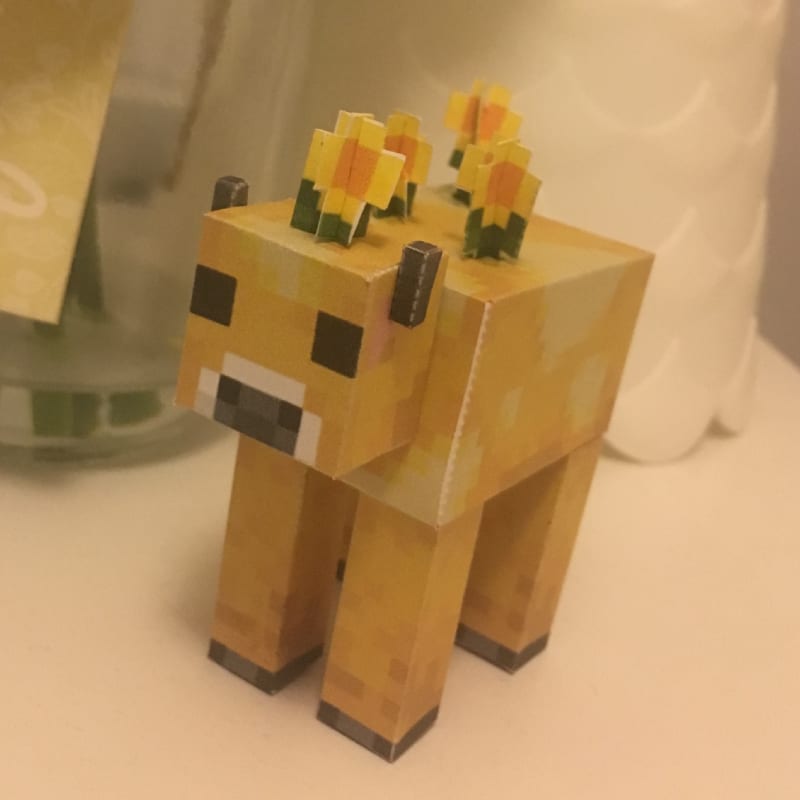 The Moobloom is a character from the upcoming game, Minecraft Earth. It's basically a mooshroom but the mushrooms are replaced with dandelions and instead of the red texture, it is now a dandelion yellow colour.