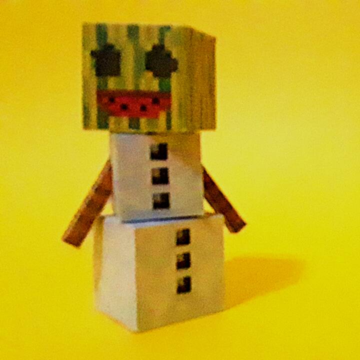 "Behold! With a body of snow and a head of a melon, the melon golem spits rapid-fire seeds at its enemies. Impressive, is it not?" "A Melon Golem is a variant of a snow golem with a melon as the head as opposed to a carved pumpkin, found only in Minecraft Earth." - https://minecraft.gamepedia.com/Minecraft_Earth:Melon_Golem