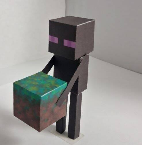 this is a small version of the enderman, the whole design was created by me. thanks to powerpoint for the geometric figures and to pixelpapercraft for the grass blocks and enderman's head (taken from the "enderman generator"). enjoy it