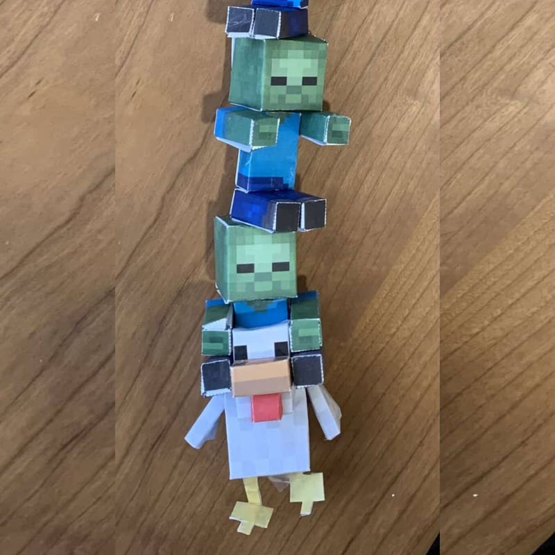 Papercraft: A Chicken Jockey Tower from Minecraft Dungeons. You have to print out the Baby Zombies 6 times!
