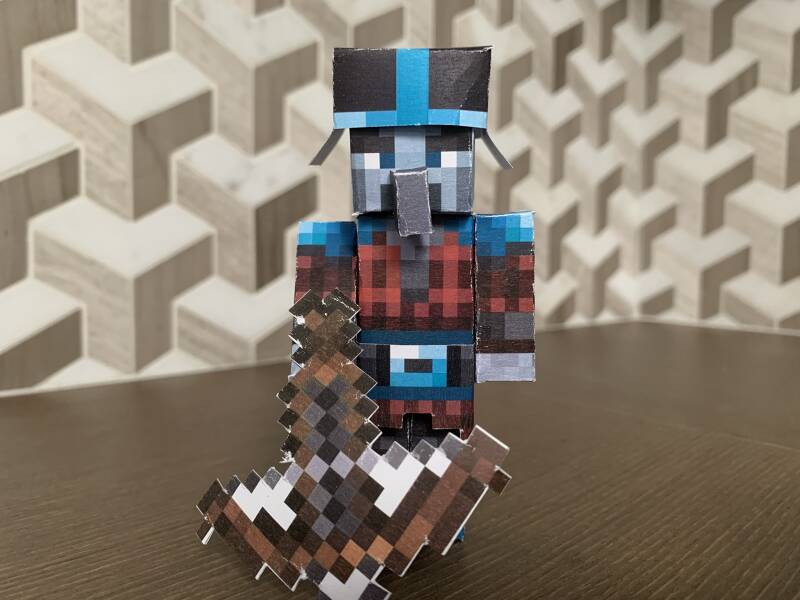 There are two versions of the Armored Pillager. One has gold and dark metal armour, a pink tunic, a helmet with nose protection and beige pants with black boots. The other has diamond and dark metal armour, an orange tunic, a helmet comparable to a German helmet from WWI, and black pants with gray-blue boots as well as being larger (2.7 blocks).