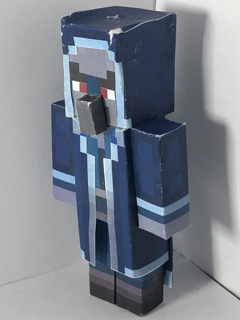 Appearance The Iceologer is an illager with blue markings on its face. It wears a blue coat with white outlines around the hood and cloak and a cape in the back, it lastly wears light bluish pants with black shoes. Unlike normal illagers, the Iceologer possesses red-brown eyes, which differs it from most illagers who have green or blue eyes