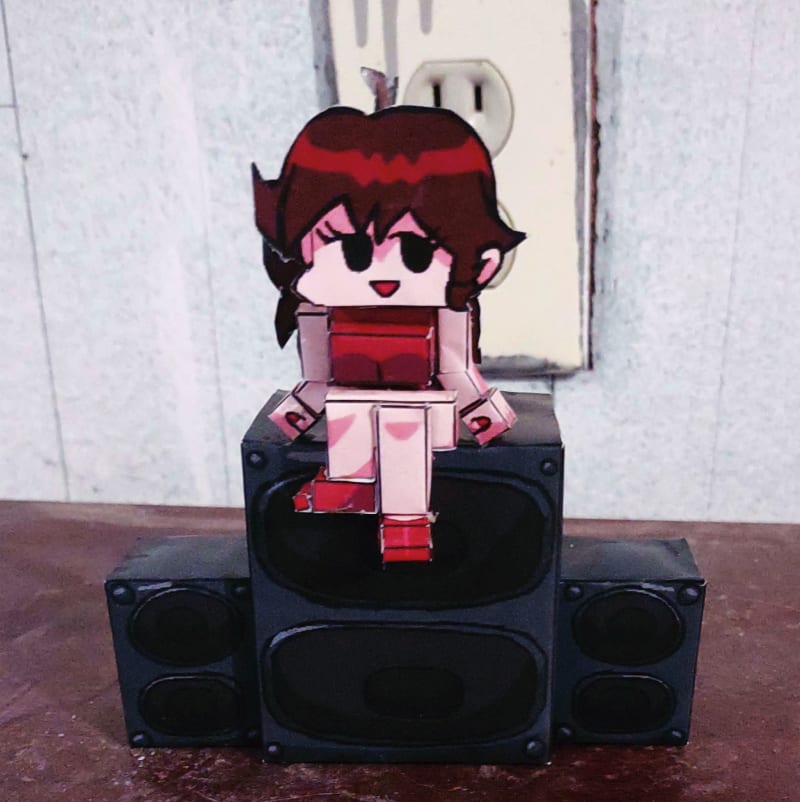 Girlfriend is Boyfriend's partner and the daughter of Daddy Dearest and Mommy Mearest. She is usually seen sitting on top of the speakers, bopping her head to the tempo of the music, cheering Boyfriend on and keeping track of combos. Her tracks include Tutorial, where she teaches players how to play the game.