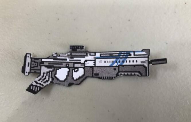 this is a gun from splitgate called assault rifle. very fun game and would recommend it. download splitgatefor free: https://store.steampowered.com/app/677620/Splitgate/ Information on splitgate: https://en.wikipedia.org/wiki/Splitgate