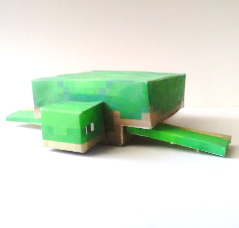 A turtle overall resembles its base-game counterpart with the slight exception of its texture being brighter and brighter green stripes along its shell.