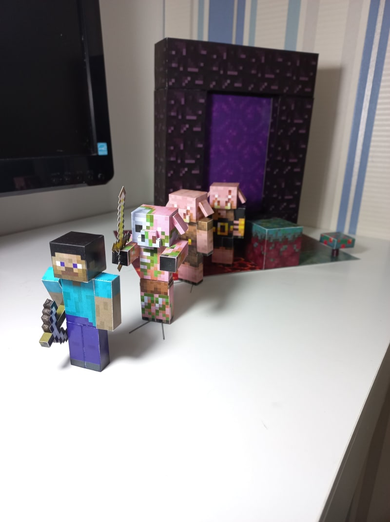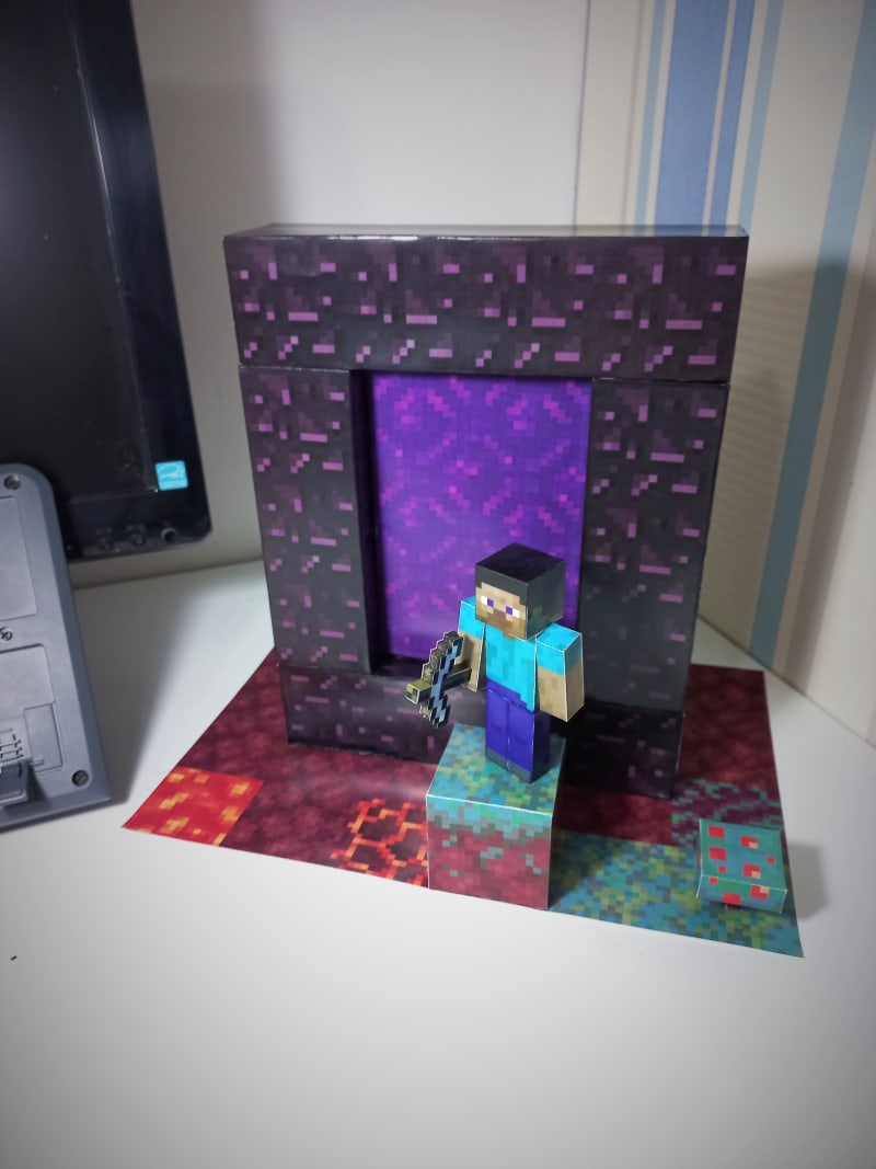 A nether portal is a manufactured structure that acts as a gateway between the Overworld and the Nether dimensions. That diorama has a multiple things around it. You can put that things in position that you want. I prefer to put the mushroom in the right place, but no judgdements if you not want.
