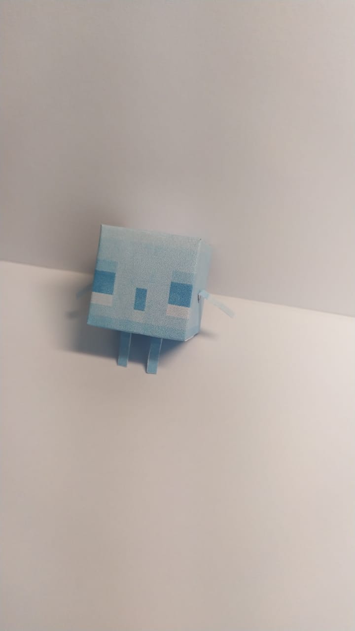 A wisp is a small ghostly mob that resembles a baby ghast. However, there are differences. While a baby ghast has a translucent body, a wisp's top texture resembles the blue block within beacons found within the base game, while the rest of its body has a light blue color. A wisp's eyes and mouth have the darkest shade of blue. The eyes also appear to bleed over the edge of the face and onto the side of the texture. There is a small white line texture below the eyes and the mouth, while there is also a subtle blue line above both of the eyes, lighter than the eyes and just barely slightly darker than the rest of the face. A wisp appears to have a white 2D texture for it's arms, and a light blue 2D texture for its legs. A wisp appears to be floating due to its visible arm and leg appearing as if it were moving back and pointing down. A wisp's eyes and mouth appear to be wide open.