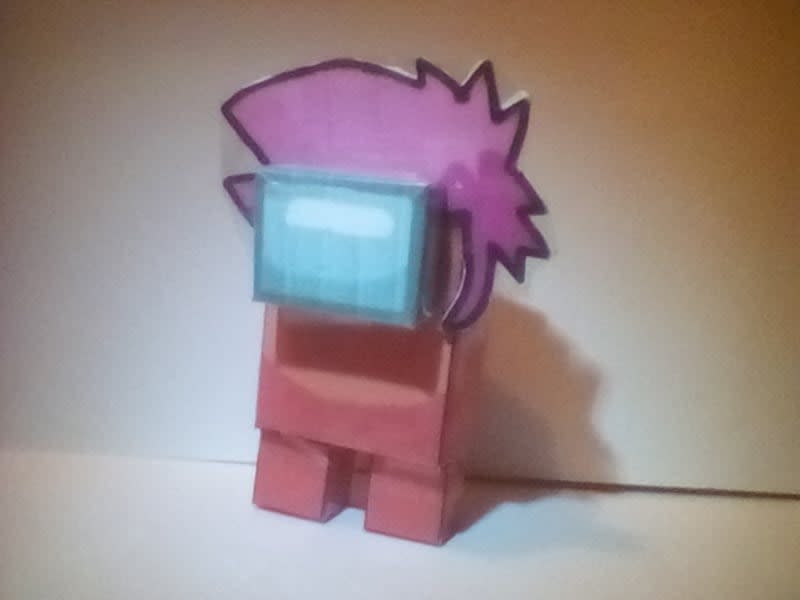 The purple crewmate(or impostor?) And black, a coral crewmate with pink hair can be seen in the background. The crewmate in question is meant to represent dojimadog. Director/artist behind fizzy pop panic.