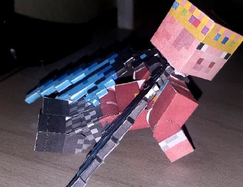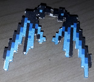 This is a custom elytra, but this model is not official from the game. This wing was created by me, however, it was slightly based on a mod (Wings Mod link: https://www.curseforge.com/minecraft/mc-mods/wings/files), and on some custom elytra models on the internet. It's not so difficult and complicated to assemble, but it requires a little patience because of its size, which was calculated to be proportional to the size of an articulated character.