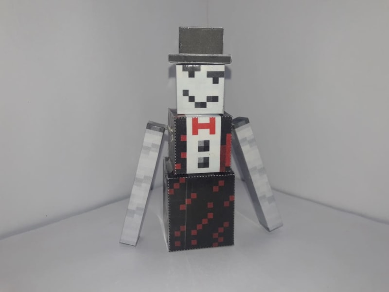 Here is one of the forms that Romeo the Admin takes in Minecraft Story Mode Season 2. He takes the appearance of a snow golem with a hat, Icy Golem arms, a block of ice as a base and a color palette in shades of red...