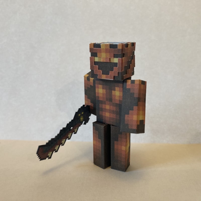For this design, I'd like to thank CubeNinja (https://www.pixelpapercraft.com/user/cubeninja) for the physical construction and the photo. In the second photo, the scythe is from this texture pack (not included): https://www.curseforge.com/minecraft/texture-packs/animated-and-emissive-scape-and-run-weapons