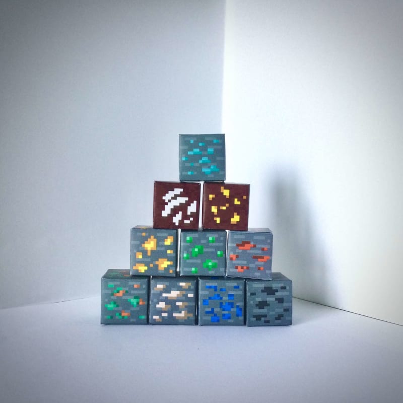 An ore (coal, copper, lapis lazuli, iron, gold, redstone, diamond, emerald, nether gold and nether quartz) is any uncommon rock-type block used to obtain specific resources. They differ mainly by their level of rarity.