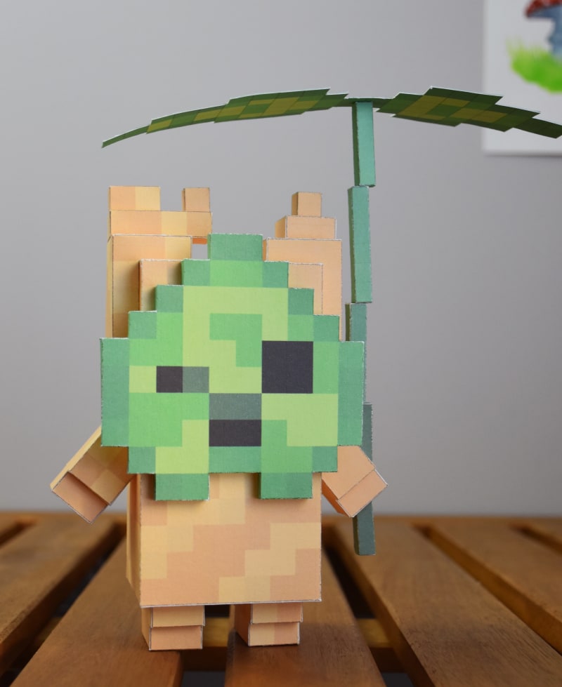 Bring a touch of The Legend of Zelda into your world with this adorable voxel-inspired Korok papercraft model! This beloved forest spirit has been reimagined in a unique pixelated style, inspired by the blocky worlds of Minecraft. The simplified, cube-like design retains all the charm of the original Korok while offering a modern, stylized twist.