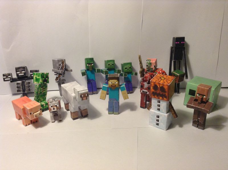 The wither, my dog, Steve, the snow golem, the villager and the enderman were all smiling for the picture whilst the creeper, skeleton and the zombie villager were interested in killing Steve. The sheep was looking at some grass, the pig was looking at some mud and the mooshroom was looking at some mushrooms. The zombie, the baby zombie and the zombie pigman were interested in killing the mooshroom and finally, the slime was looking at the villagers butt.
