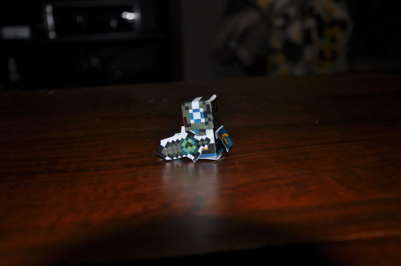 it is my mini with a mini ender sword, mini diamond sword, and a minecon cape