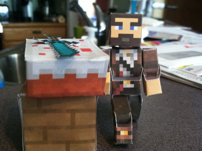 It's my dad's birthday so, as a gift, my sister and I made a bendable of his character, a wooden plank 'table', a cake, and a diamond sword papercraft. Happy Birthday, Dad! (P.S: It's also my dog's birthday, but a birthday picture for him may come later-stay tuned!)