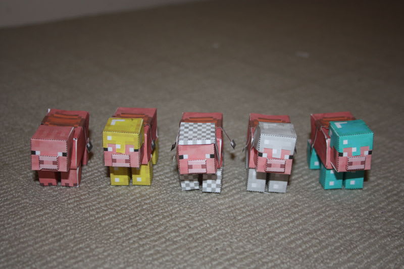Their names are: Benny the Basic Pig, Gordon the Gold Pig, Charlie the Chainmail Pig, Ian the Iron Pig and Dave the Diamond Pig (the leader)