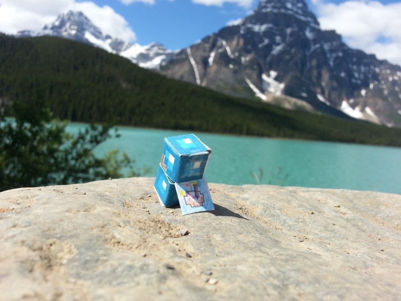 Toy steve at a lake