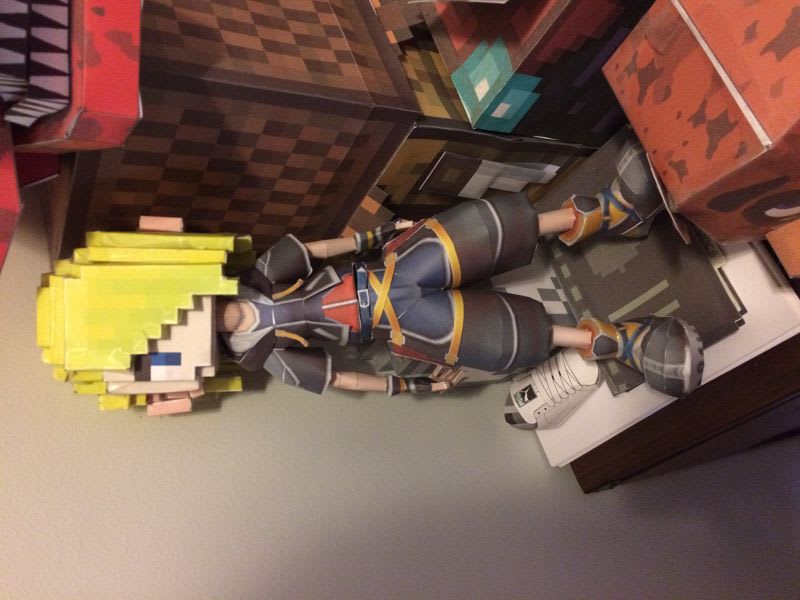 These are two separate projects, the head is from a design here: http://pixelpapercraft.com/papercraft/52e89c76d679355302000068/rogue-cube-world