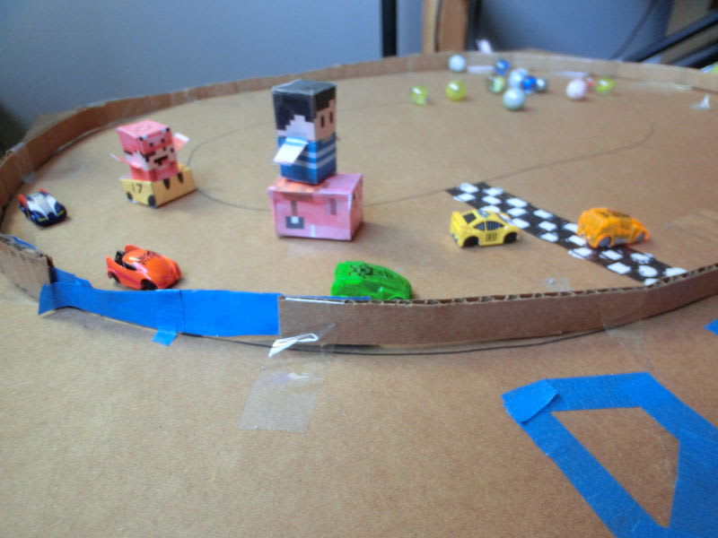 My Mini's are racing my Micro Chargers. My mini is driving my custom go kart and Slamacow is Riding Joey