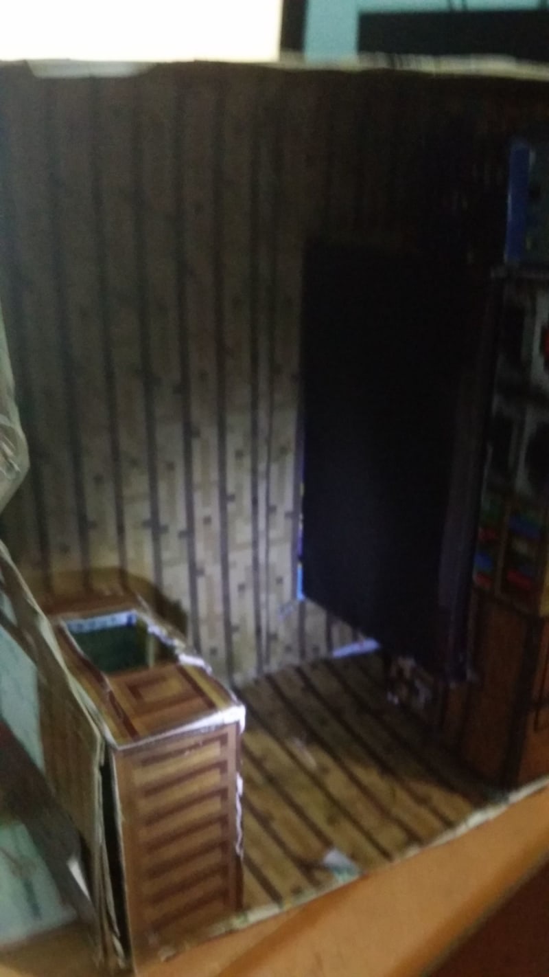 Sorry if there is no light and you guys cant see it well there is no light shining on it. The bed room was pretty sunny but i had no light shining onto it i decided to use a laser key chain it did not work but it looked freaking good (XDthis is a foto on the tank you messedge for superjordyg i placed a blue pacman arcade to the side and the basic tools too and to the left side there is a bunk bed sorry that it looks bad and it is also covered