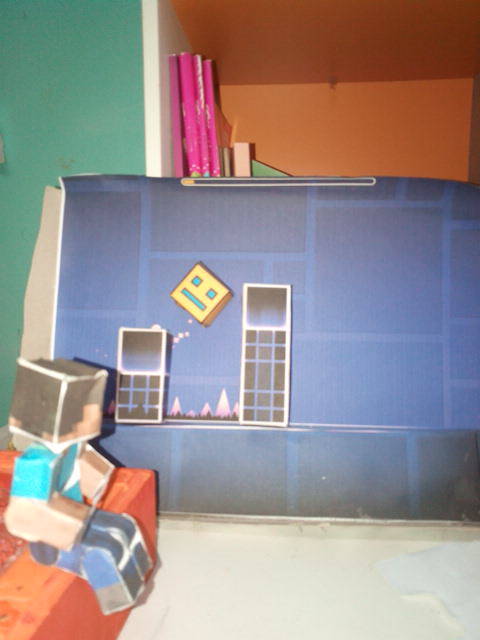 Steve started geometry dash and he has already decided to use a controller instead.Sorry I have'nt uploaded in a while and sorry you can't really see the controller.My last picture that I uploaded was “papercrafts I folded".See ya.