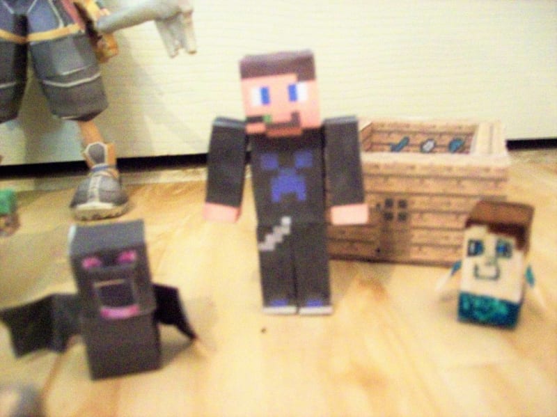 Hi! I'm SlimeyMiner29, but you can call SlimeyMiner or Simey. I have been papercrafting for about 1 year now. I love games like Kingdom Hearts, Minecraft, and Terraria. It's so great to finally be on this site! This is my "skin", a dragon, and a custom mini I freehanded. Also in the background is Sora, from Kingdom Hearts. That took me a week to build.