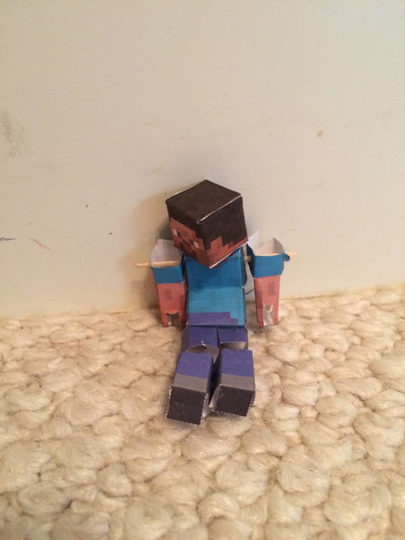 I used the non bendable steve and cut the knees and shoulders so it could move.And i used toothpicks so the head and arms could move.I also cutted out the back so the body could move.