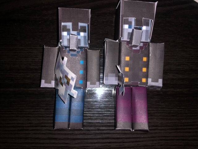 https://minecraft.gamepedia.com/Minecraft_Dungeons:Armored_Vindicator Armored Vindicators have two variants, one is a Vindicator that has a hornless metal helmet, gold buttons, purple pants, and wields a Double Axe, the other is a Vindicator that has a horned metal helmet, diamond buttons, blue pants and wields a Whirlwind, in addition to being larger (2.7 blocks).