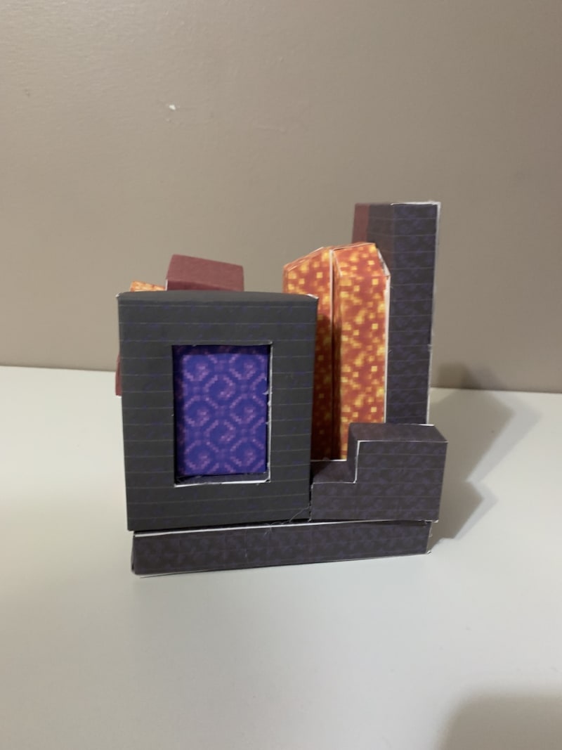 Nether portal from @snesivan https://www.pixelpapercraft.com/photo/61fd4104a60653a41074daa5/ruined-portal I didn't see the video so mine is a little different. I love his builds.